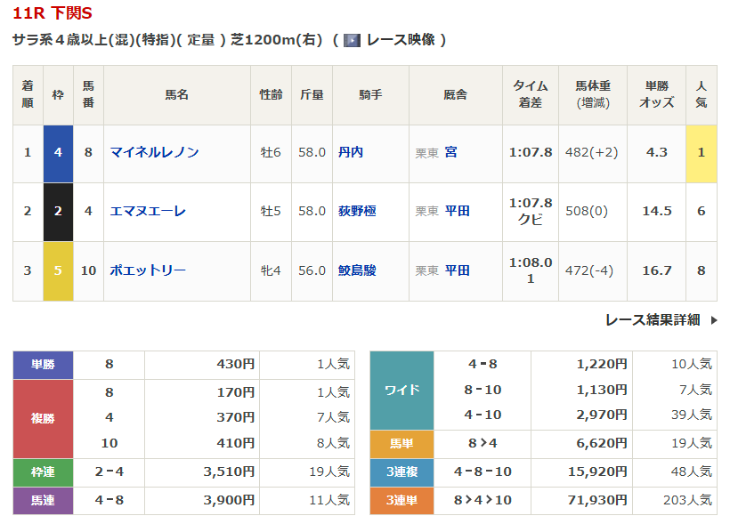 ◎マイファミリー(8人気)2着 複勝450円 - 2/2【小倉12R】4歳以上1勝クラス