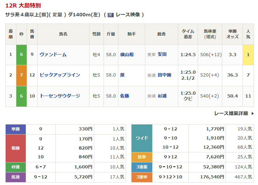 | 2/23 東京 | 12R | 6R | 50.0% |