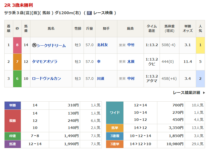 | 2/23 京都 | 12R | 6R | 50.0% |