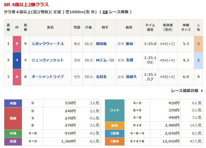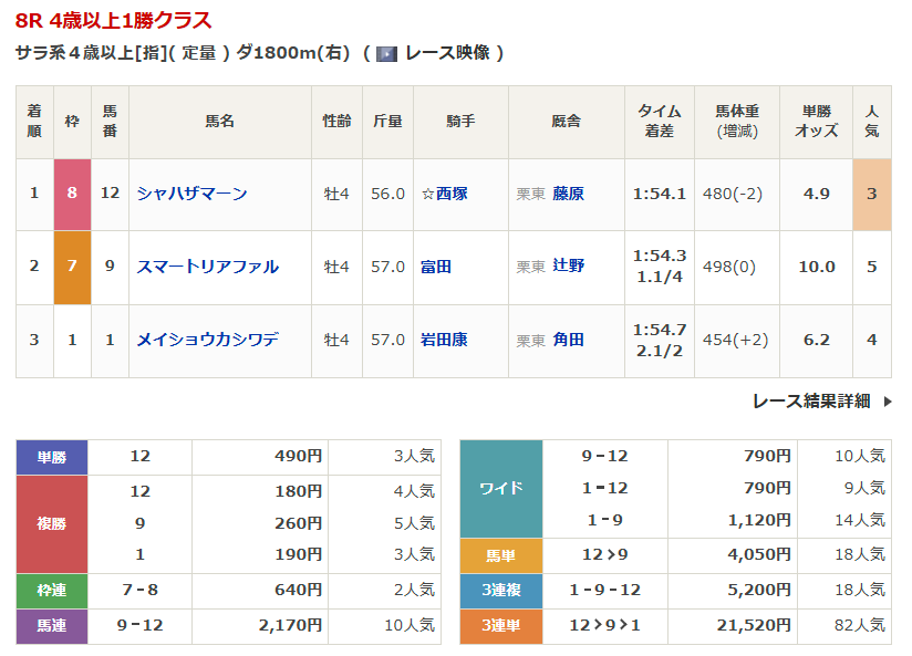| 2/22 京都 | 12R | 6R | 50.0% |