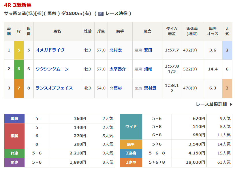 このレースでは穴馬の◎ダノンモンテローザ(5番人気)が2着に好走。相手馬の★レッドエヴァンス(3番人気1着)、★アドマイヤジェイ(1番人気3着)もそれぞれ馬券内に入りました。人気寄りの決着でしたがオッズが割れていたこともあり3連単は46,580円の配当となりました。