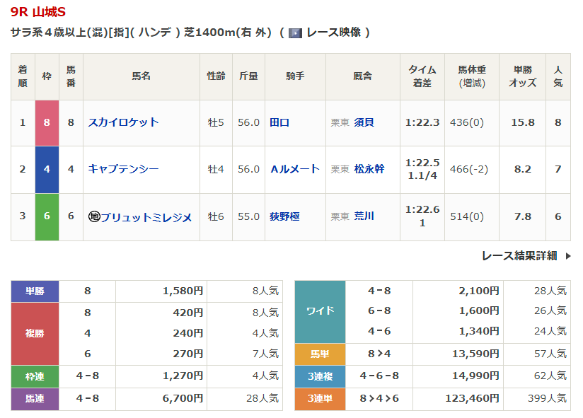 ◎スマートリアファル(5人気)2着 複勝260円 - 2/23【京都9R】山城ステークス
