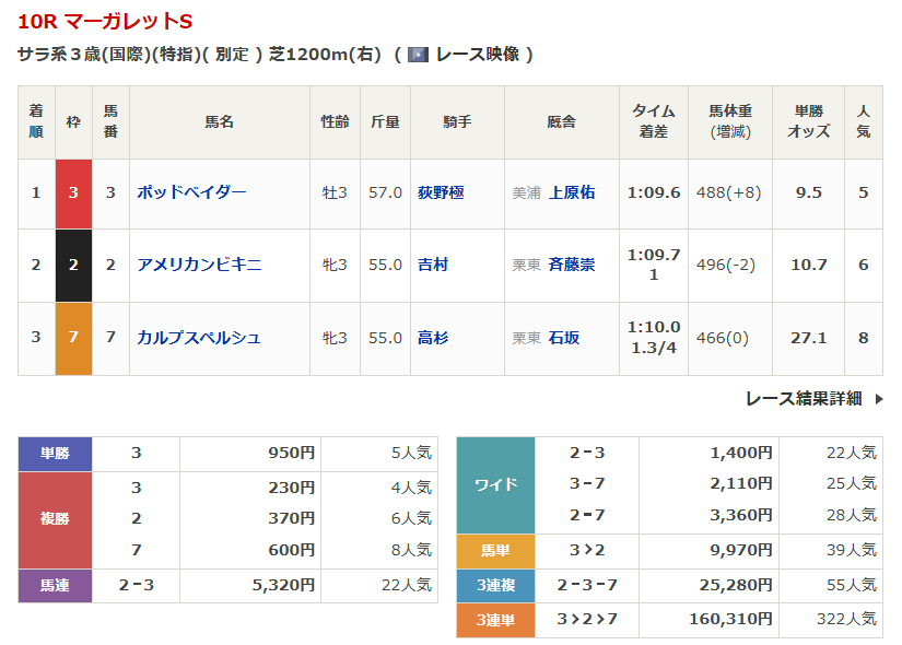◎アメリカンビキニ(6人気)2着 複勝370円