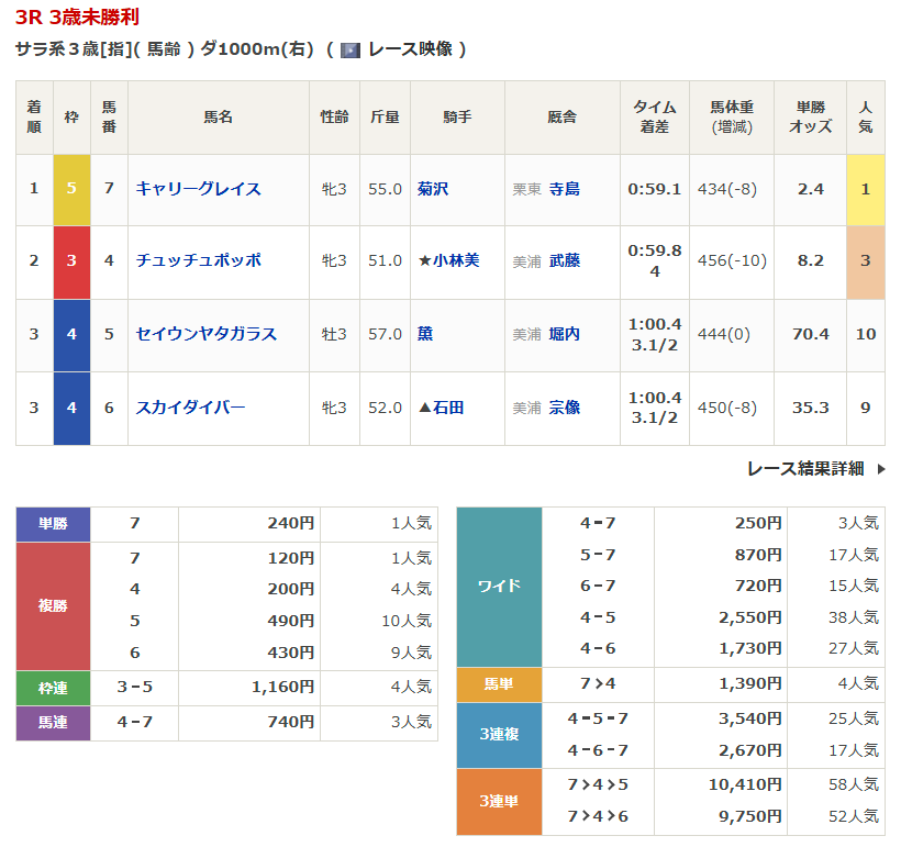 ◎コンテナワールド(2人気)1着 単勝390円、複勝150円 - 2/2【小倉6R】3歳未勝利