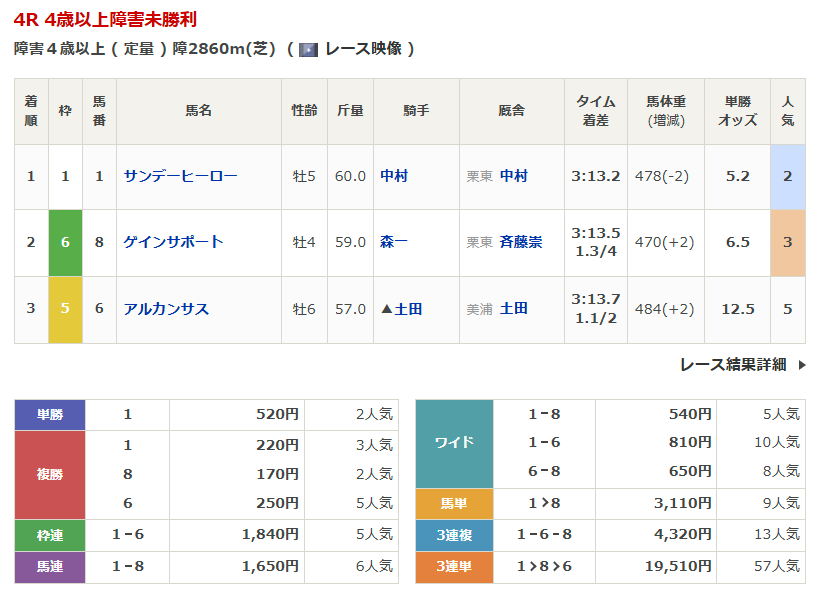 ◎ローズマイスター(7人気)1着 単勝1,270円、複勝370円 - 2/2【小倉4R】4歳以上障害未勝利