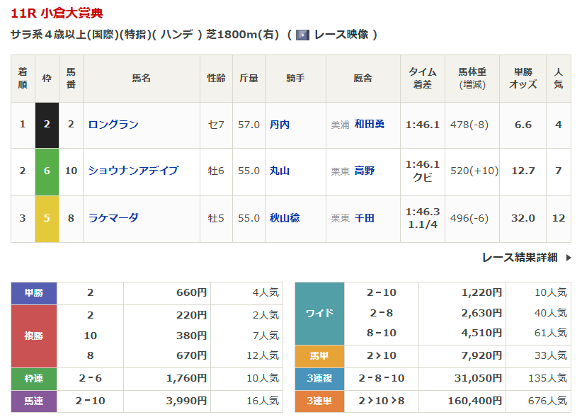 ◎マイファミリー(8人気)2着 複勝450円 - 2/2【小倉12R】4歳以上1勝クラス