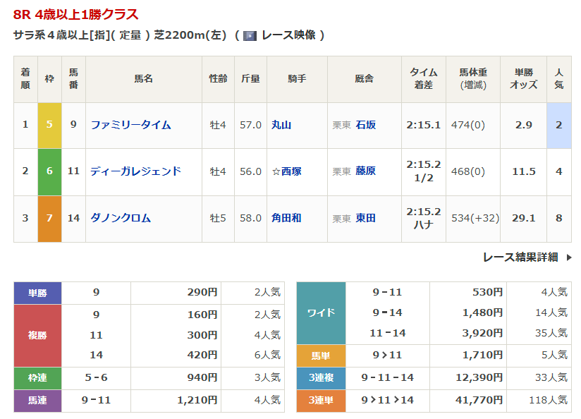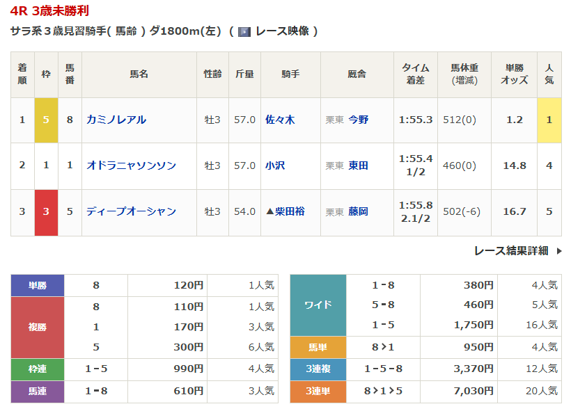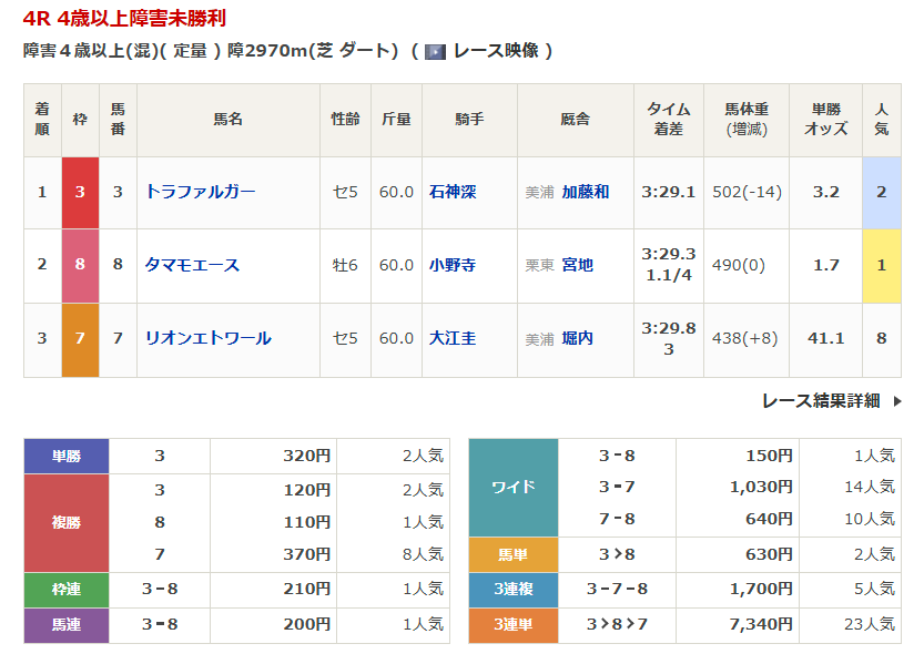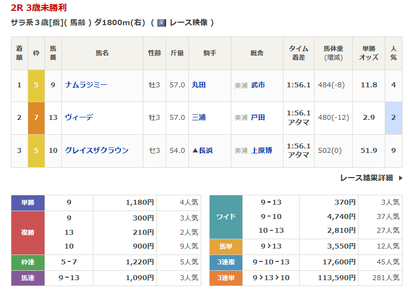 ◎ナムラジミー(4人気)1着 単勝1,180円、複勝300円