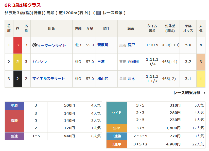 ◎ウィンスタンリー(5人気)3着 複勝170円