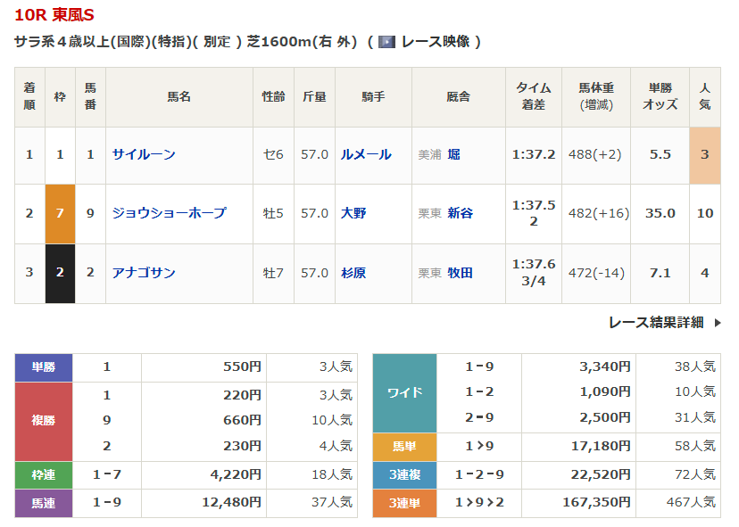 ◎ミステリーウェイ(5人気)2着 複勝220円