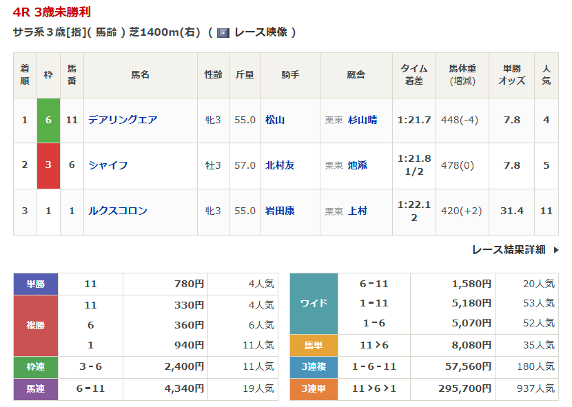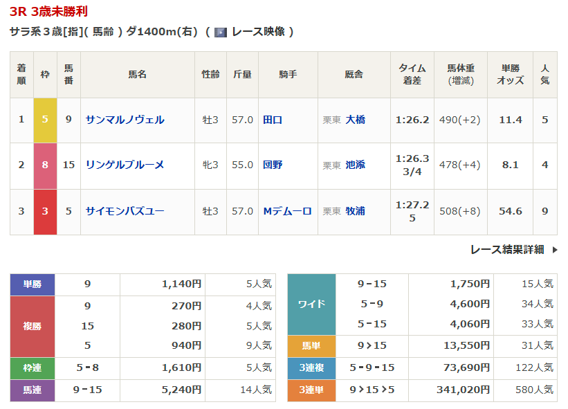 ◎リンゲルブルーメ(4人気)2着 複勝280円