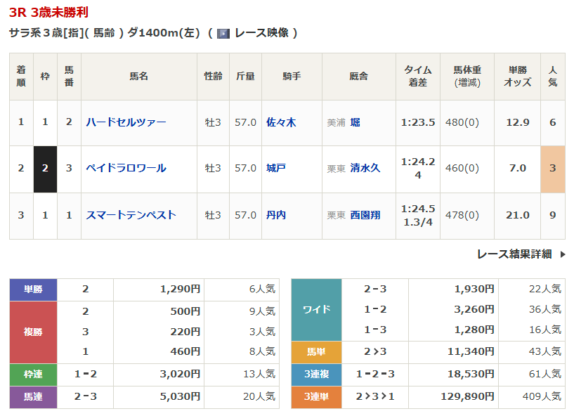 ◎デンリッレハウエル(8人気)3着 複勝790円
