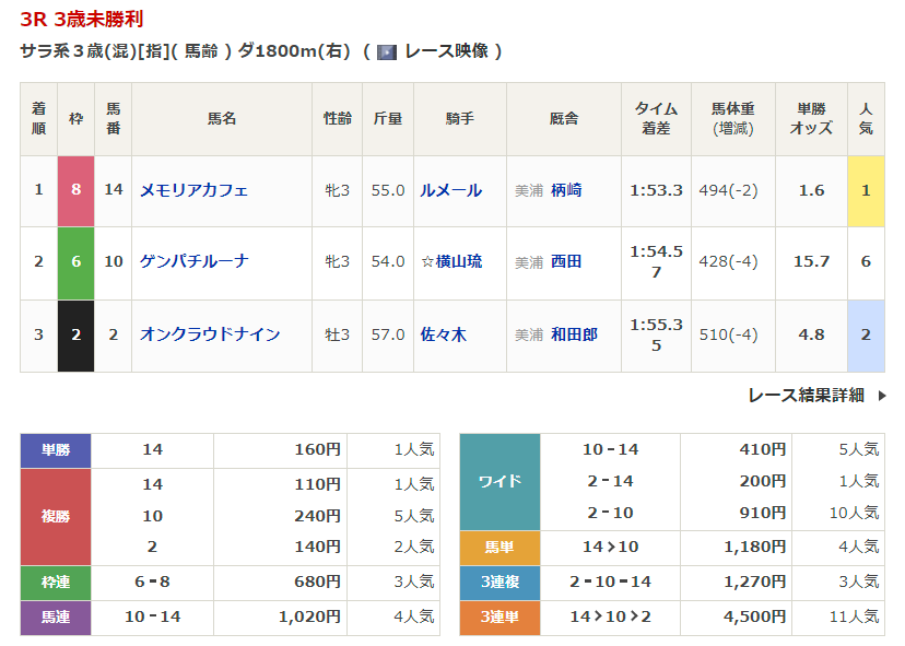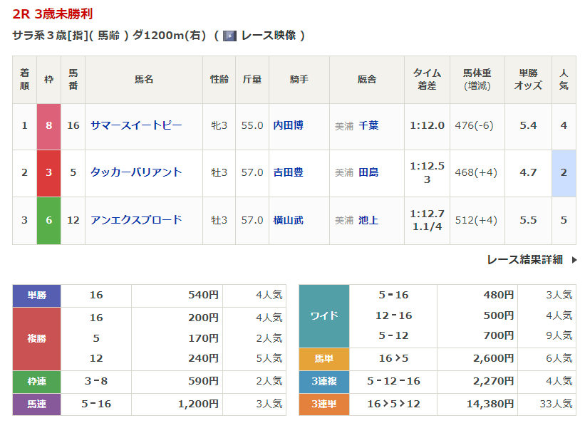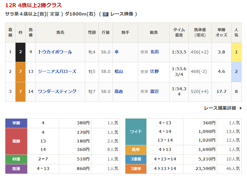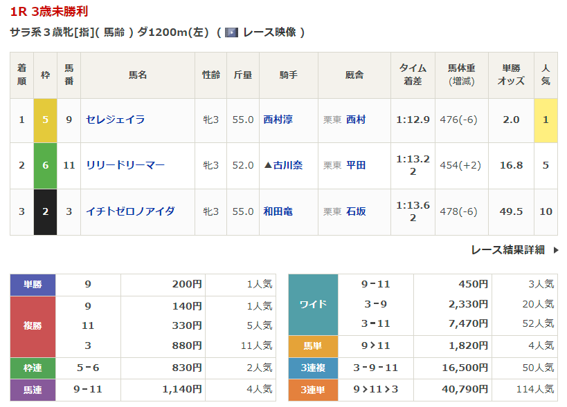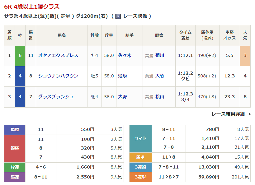 | 3/23 中山 | 12R | 6R | 50.0% |