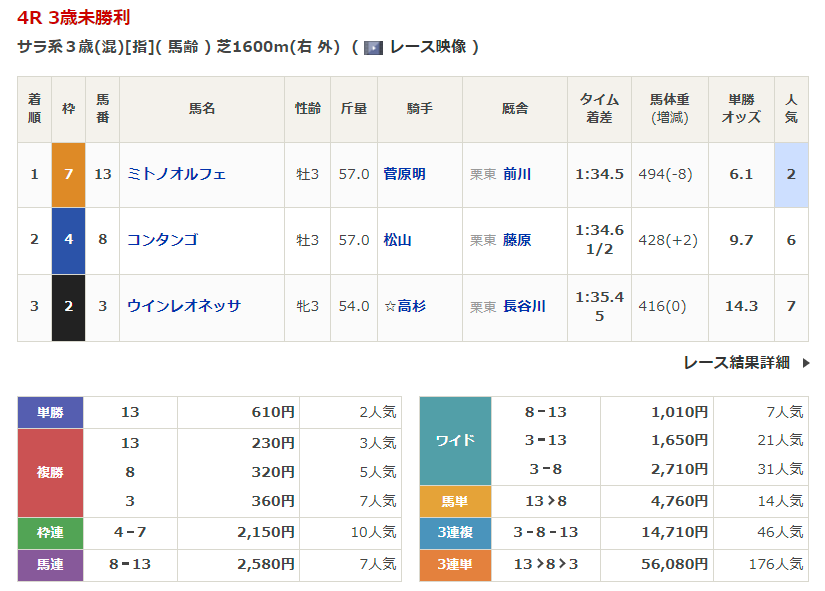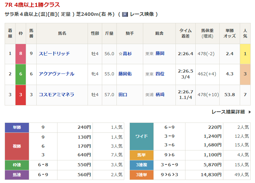 また先週は相手馬との組合わせでも高配当に繋がるレースもありました。