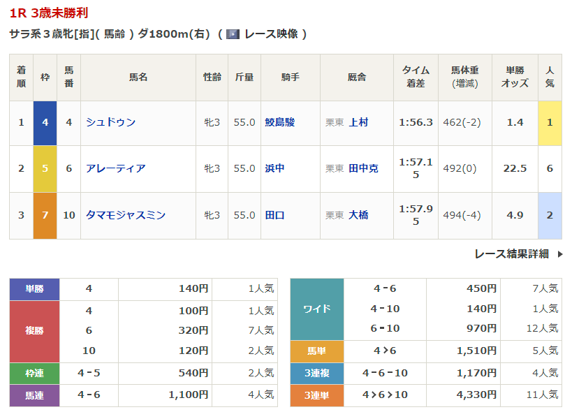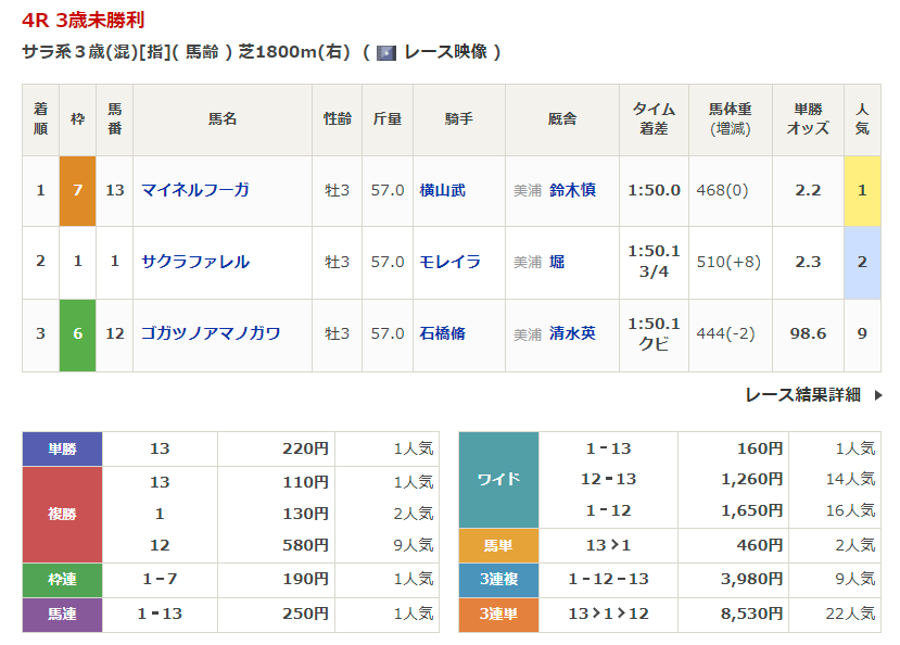 - 3/22【中京4R】3歳未勝利