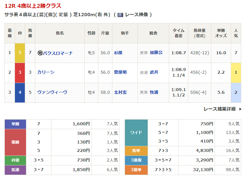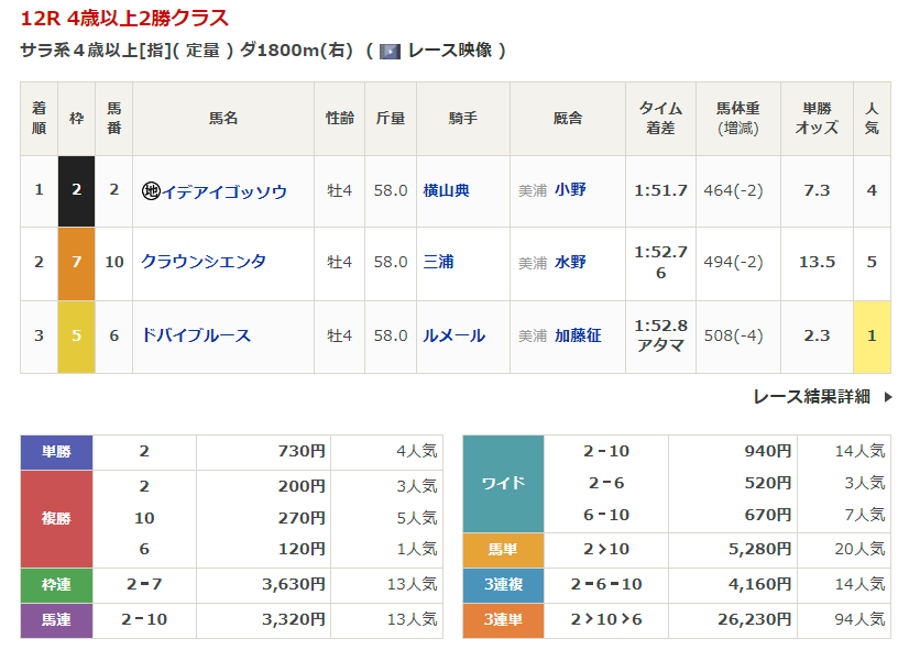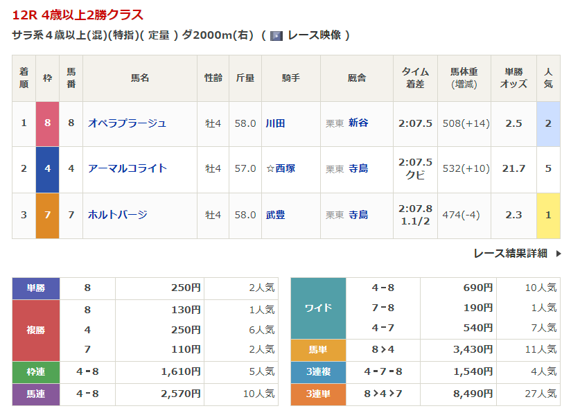 - 3/16【阪神12R】4歳以上2勝クラス