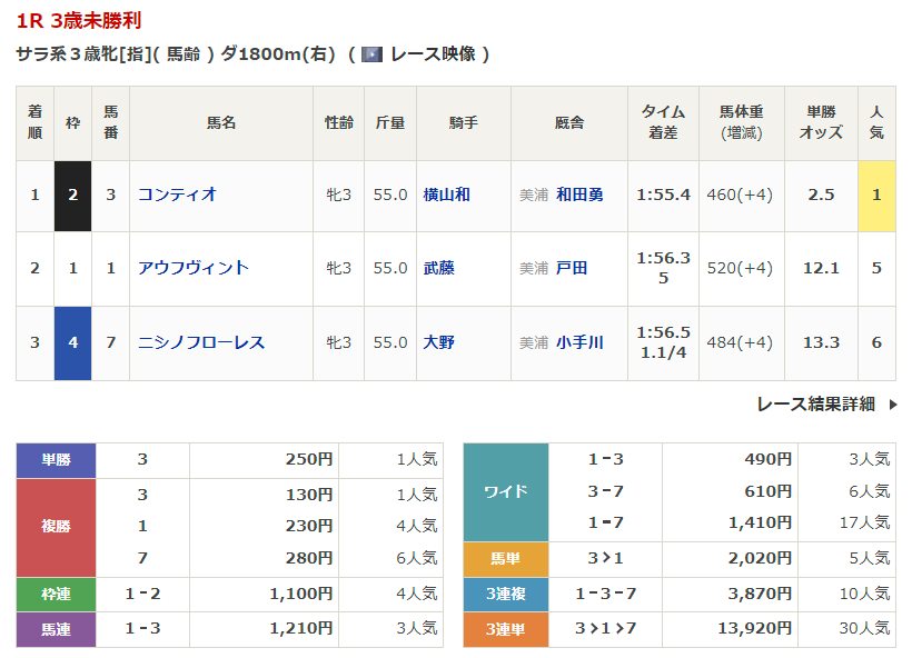 - 3/1【中山5R】3歳未勝利