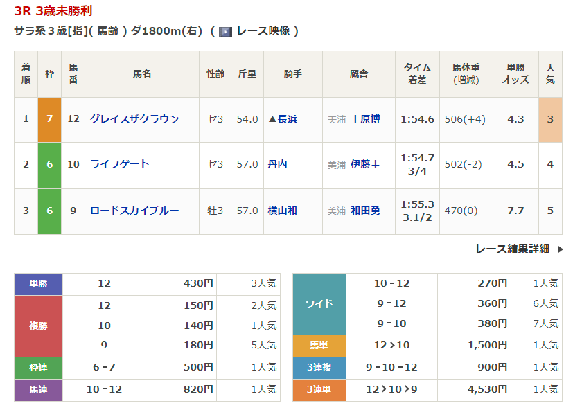 - 3/16【中山6R】3歳1勝クラス