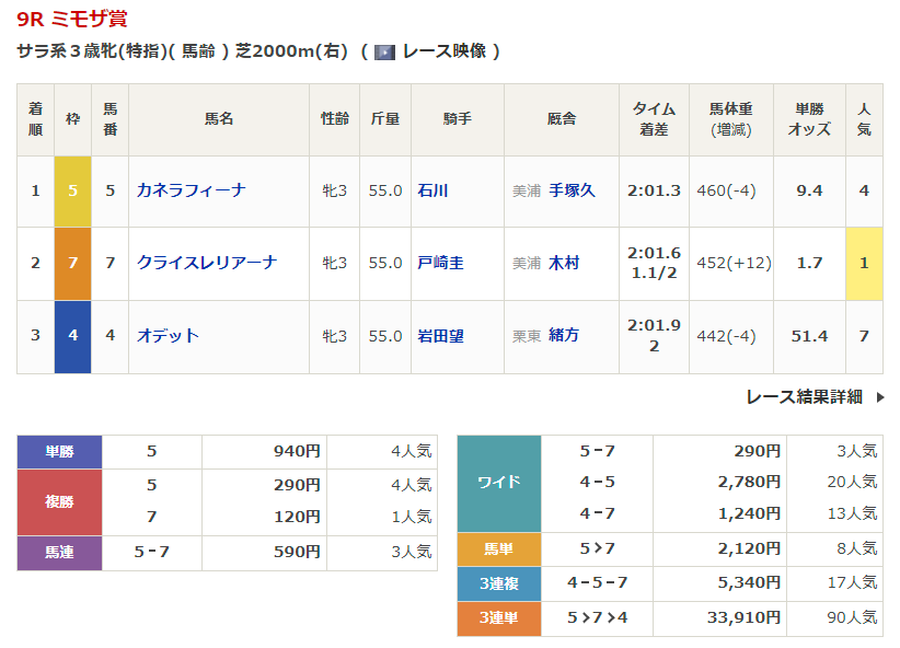 - 3/30【中山9R】ミモザ賞