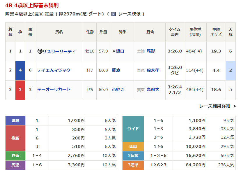 - 3/16【阪神4R】4歳以上障害未勝利