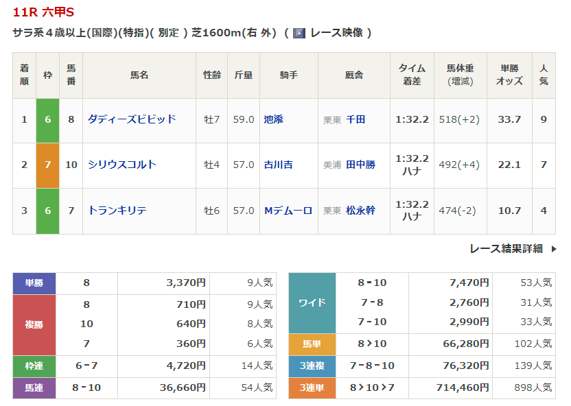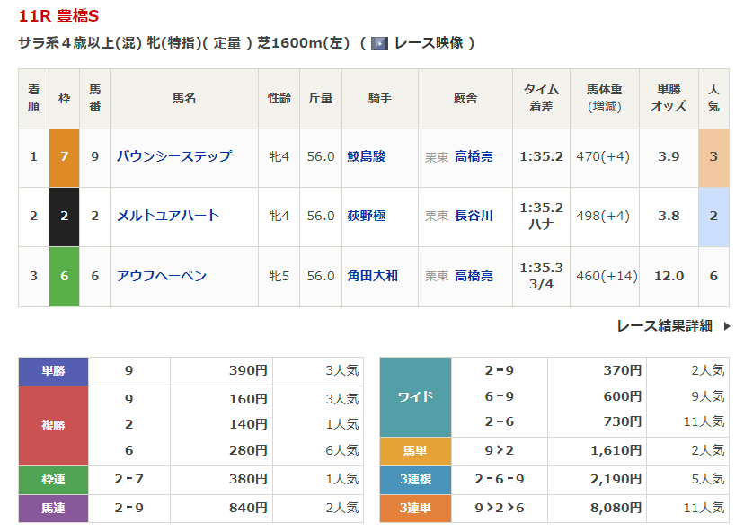 阪神競馬の穴馬的中結果