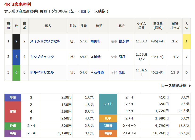 - 3/1【中山4R】4歳以上1勝クラス