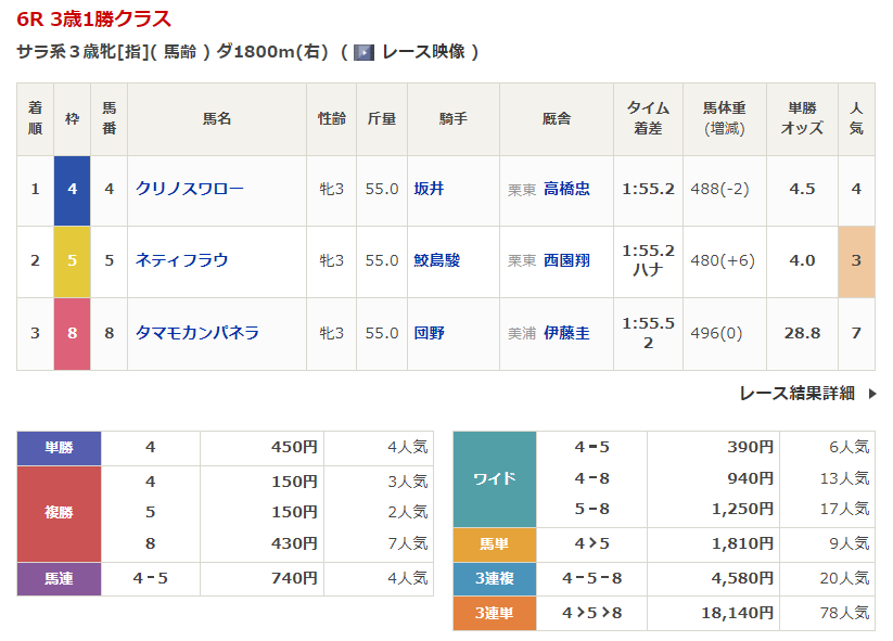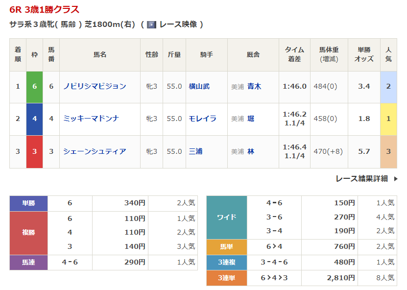 - 4/19【中山6R】3歳1勝クラス