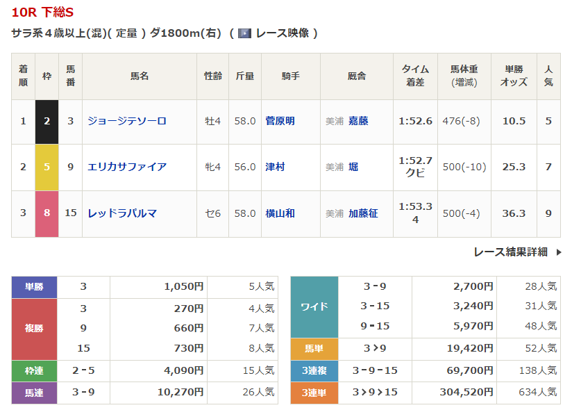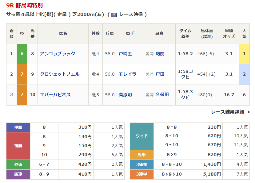 福島競馬の穴馬的中結果
