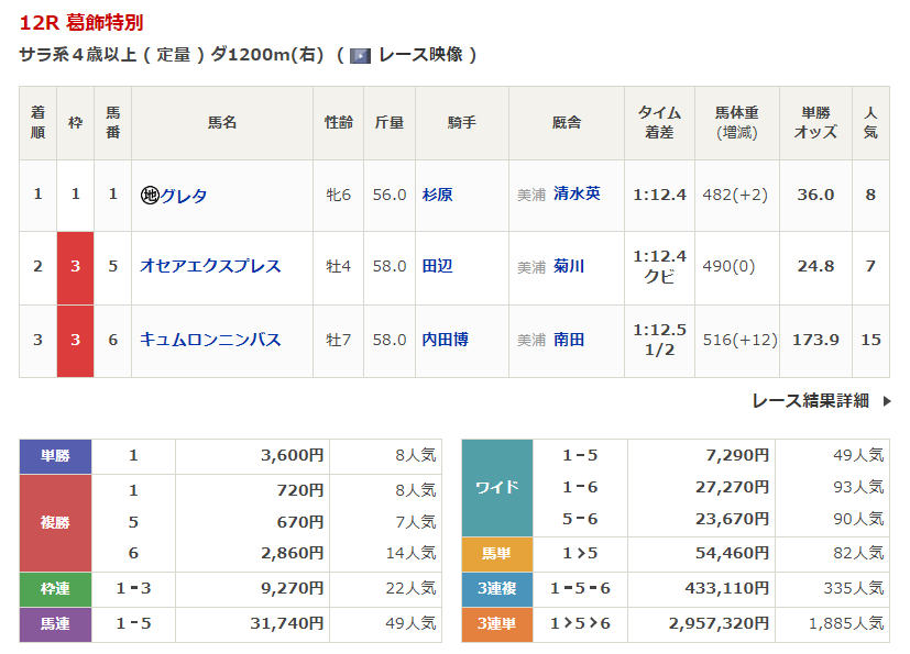 - 4/20【福島12R】4歳以上1勝クラス