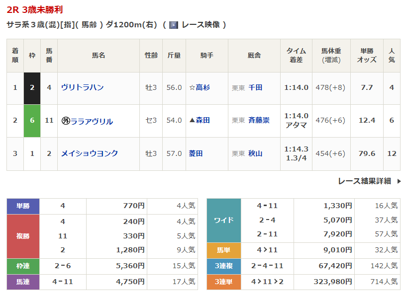 ◎ララアヴリル(6人気)2着 複勝330円