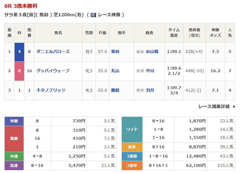 - 4/19【福島6R】3歳未勝利