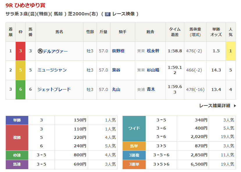 ◎ジェットブレード(4人気)3着 複勝240円