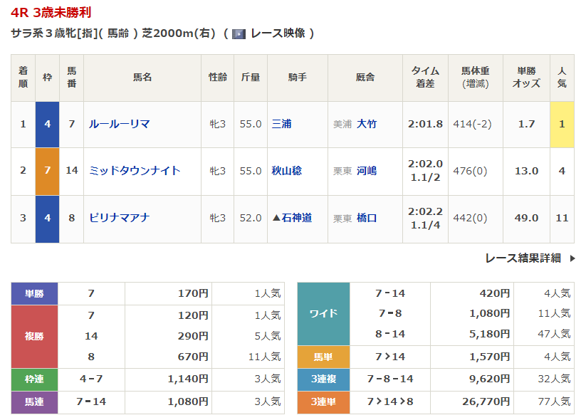 - 4/19【中山4R】3歳未勝利