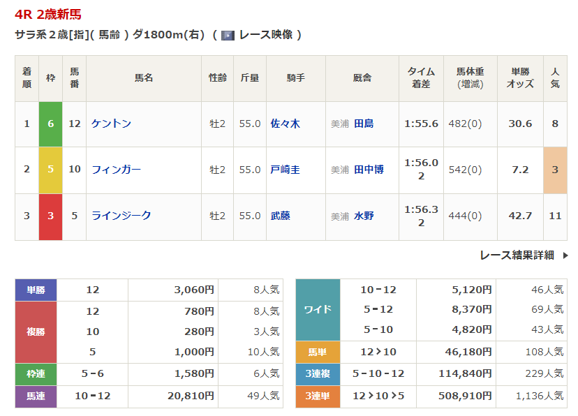 ◎ボクマダネムイヨ(3人気)1着 単勝570円、複勝170円