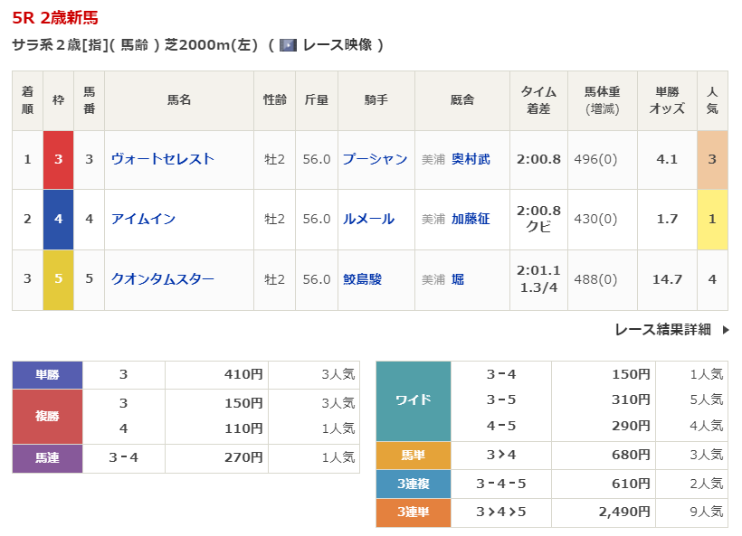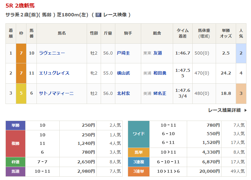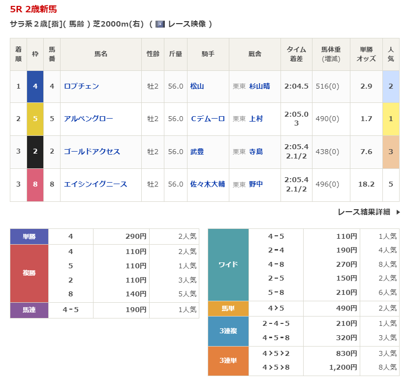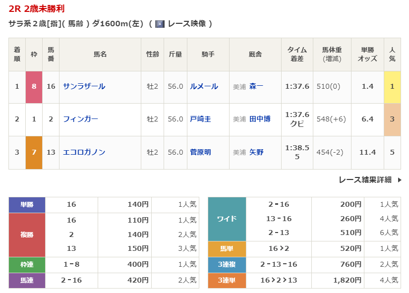 ◎ゴールデンルーキー(5人気)2着 複勝270円