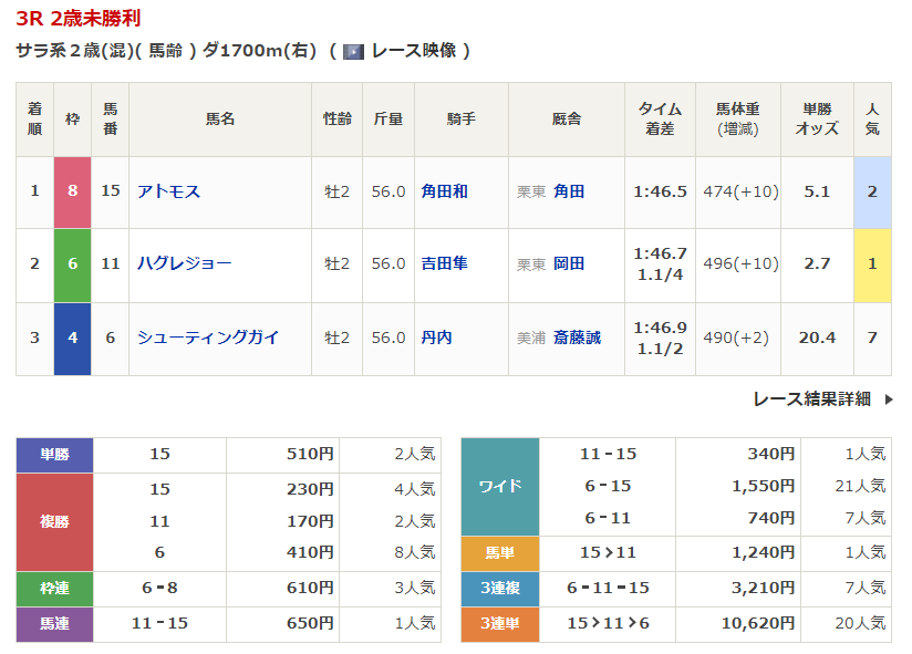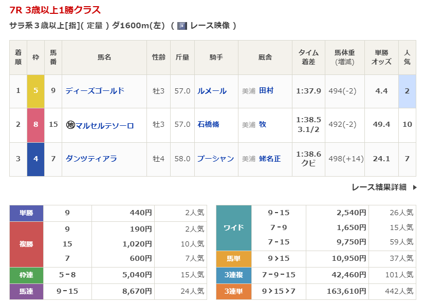 その他にも先週は相手馬との組合わせでは日曜東京の最終レースで高配当の的中がありました。