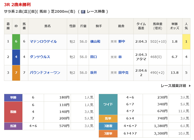 ◎パウンドフォーワン(5人気)3着 複勝200円 - 11/9【京都5R】2歳新馬