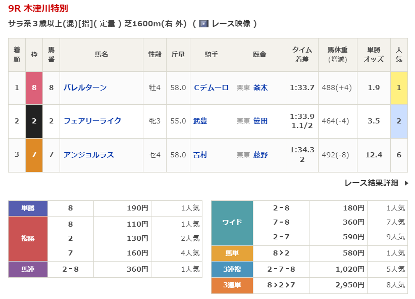 | 11/9 東京 | 12R | 10R | 83.3% |