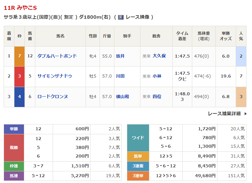 ◎パドマ(3人気)3着 複勝340円 - 11/9【京都11R】みやこステークス