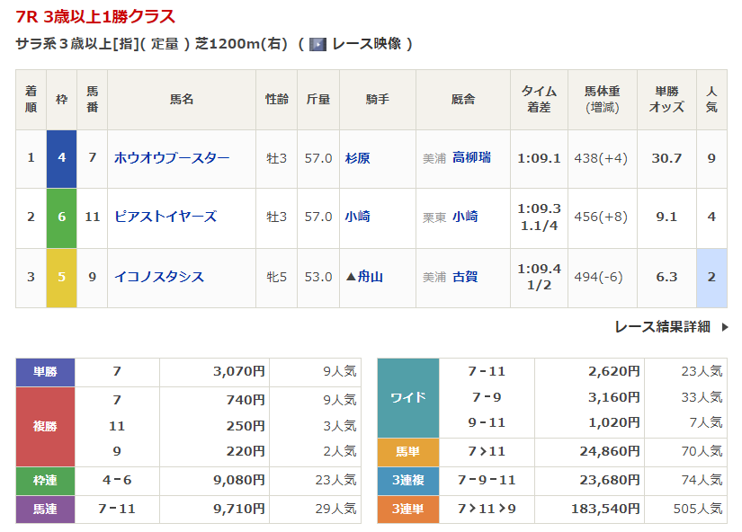 ◎パウンドフォーワン(5人気)3着 複勝200円
