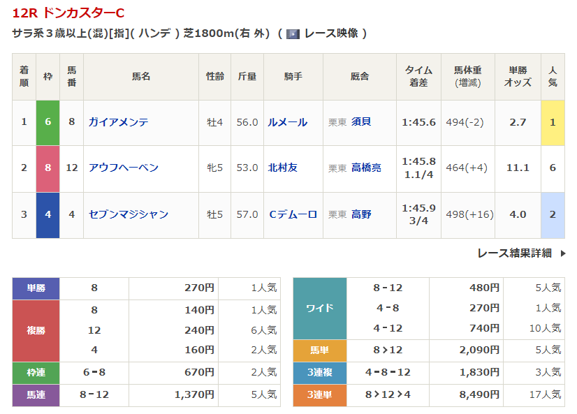 | 11/16 京都 | 12R | 6R | 50.0% |