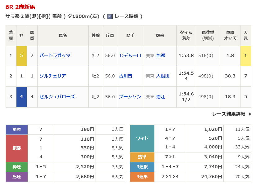 | 11/30 京都 | 12R | 6R | 50.0% |