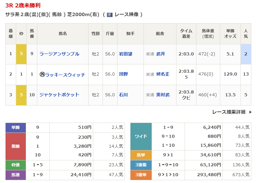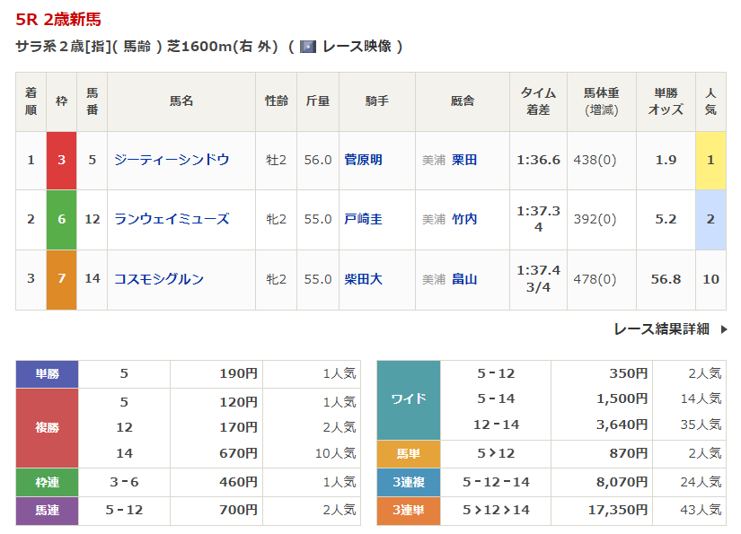 ◎ラージアンサンブル(2人気)1着 単勝510円、複勝230円