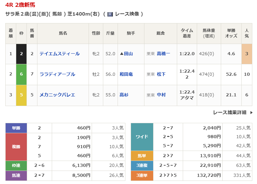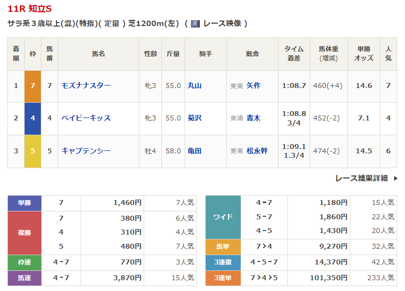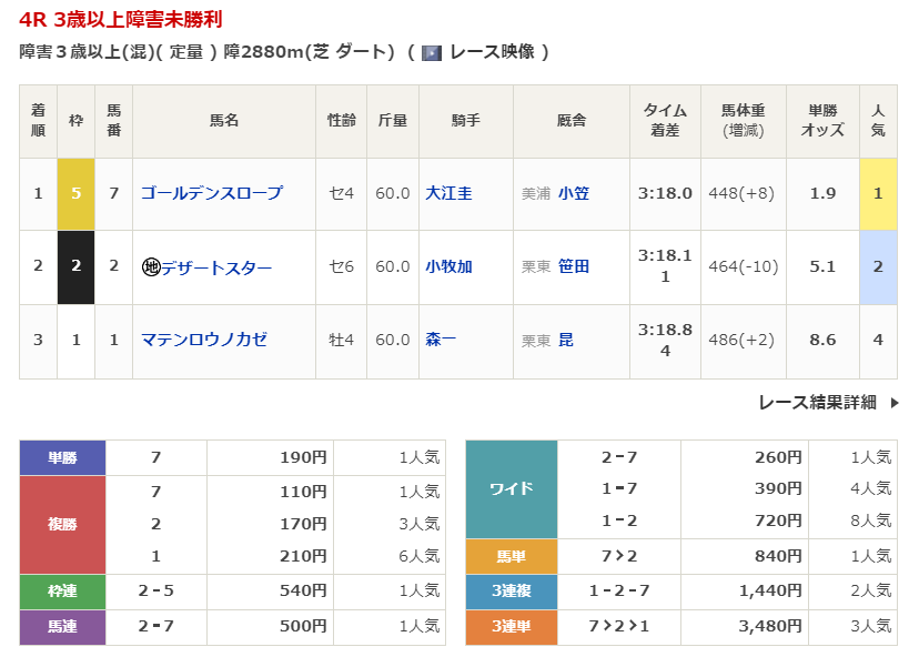 ◎マテンロウノカゼ(4人気)3着 複勝210円