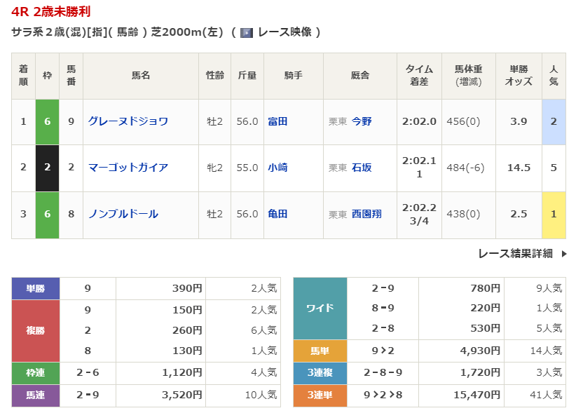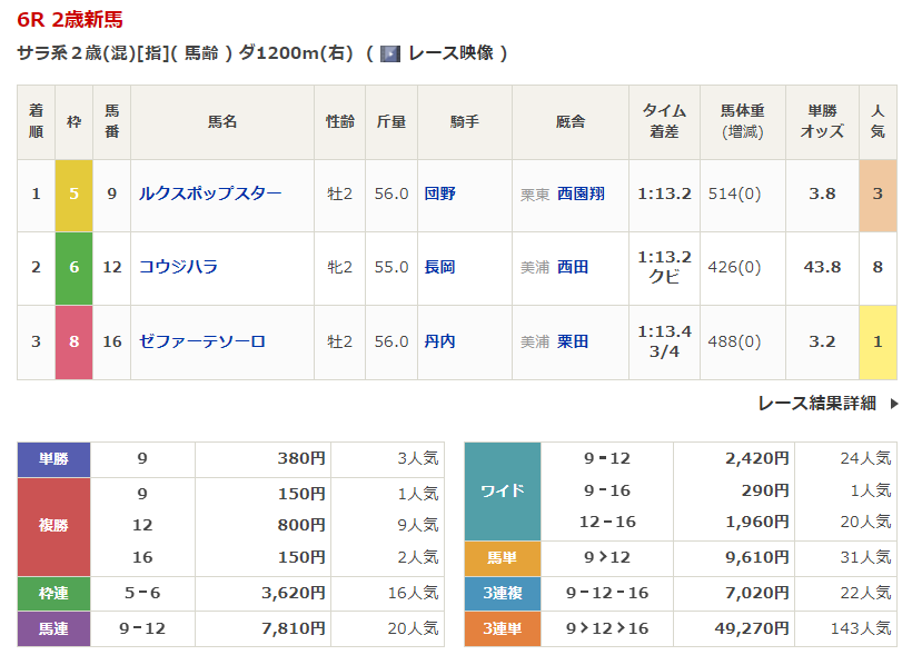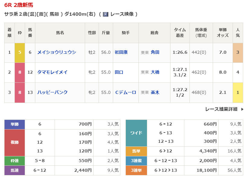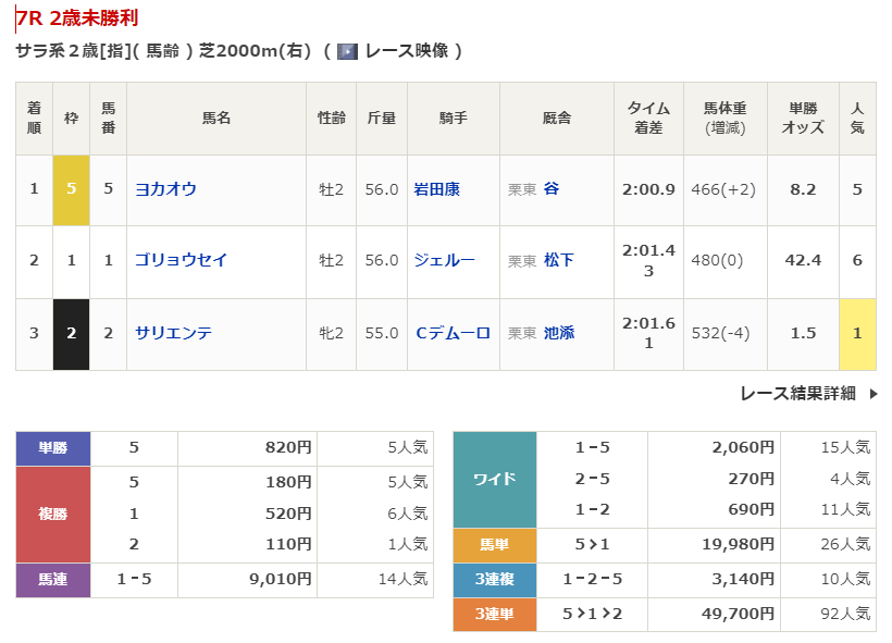 ◎ゴリョウセイ(6人気)2着 複勝520円