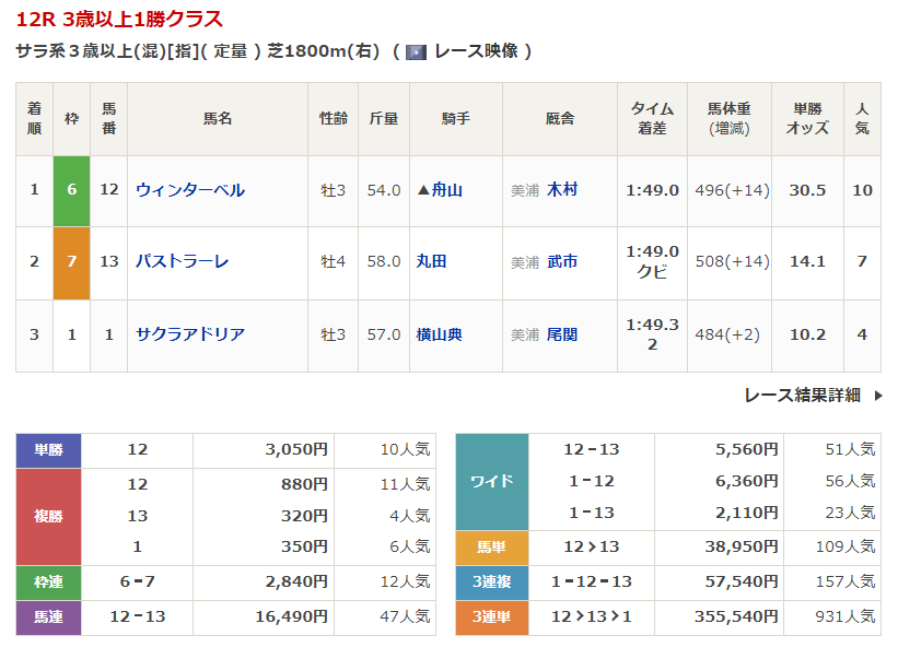 | 12/13 中山 | 12R | 4R | 33.3% |