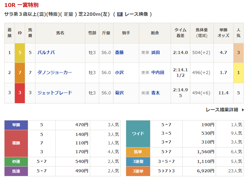 ◎ゴーフォアブローク(5人気)2着 複勝240円