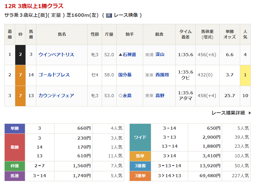 | 12/14 阪神 | 12R | 4R | 33.3% |
