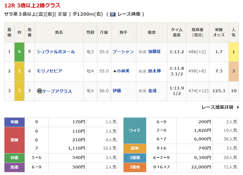| 12/14 中山 | 12R | 6R | 50.0% |