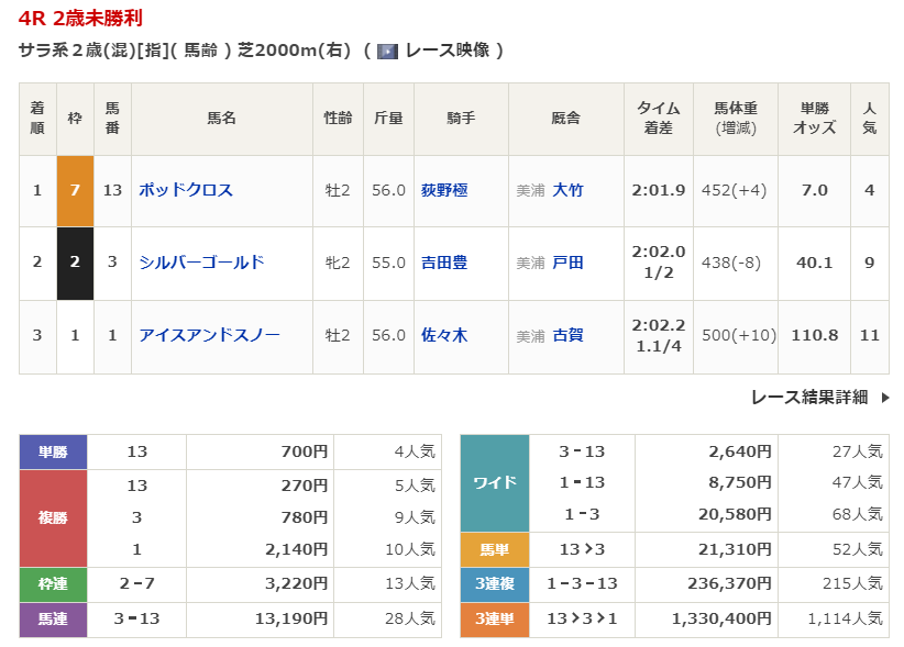 - 12/28【中山4R】2歳1勝クラス