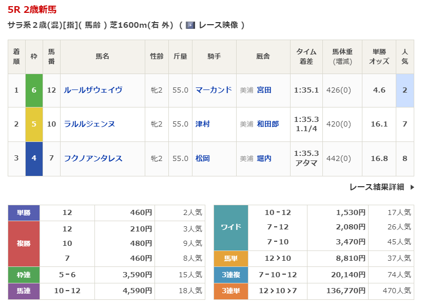 - 12/27【中山5R】2歳新馬